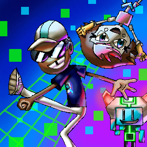 Jumping Jack Mac the orange one in baggy pants is the main character, he's very urban but can't fight to save his life, you may assume that he doesn't care too much for learning but on the contrary he's secretly a hacker and very intelligent able to come up with complex plans on the fly. He's obsessed with eating burgers from his favorite restaurant Mc.Eaties (I named him after the Mc.Donalds Big Mac burger.)